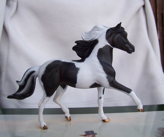 These are some preliminary "finished" photos of Diamond Tree's Cisco Classic, a beautiful little pinto miniature stallion I painted on the Breyer paint-by-number resin for Kim.